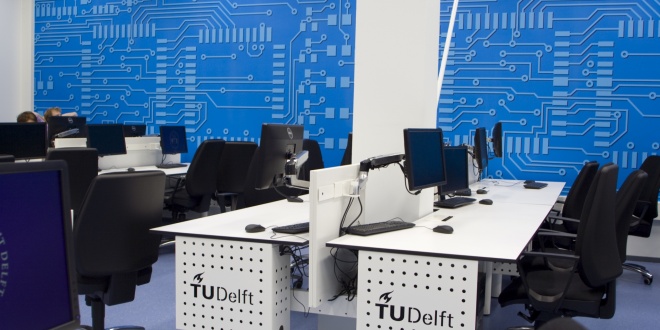 Voormalige werkplaatsen van de faculteit Industrieel Ontwerpen zijn teruggegeven aan de TU Delft. De werkplaatsen zijn omgebouwd naar computerzalen en worden ingezet voor centrale facilteiten zoals onder andere het digitaal tentamineren van studenten. De computerzalen hebben een eigen identiteit gekregen - thema "digitaal" - vormgegeven met teksten en fotoprints. Verfissende ledverlichting en interieurelementen complementeren het geheel. Op 1 oktober 2012 zijn de ruimten officieel door de studenten in gebruik genomen.