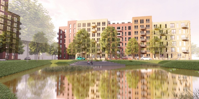 In Kanaalpark ontwikkelt de Leidse Vastgoed Maatschappij samen met studio VVKH 139 nieuwe woningen voor starters.